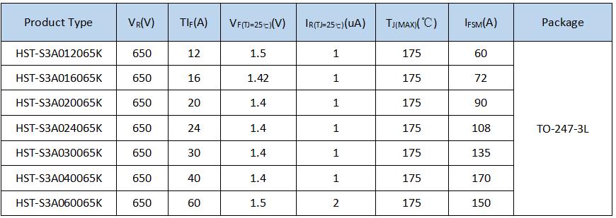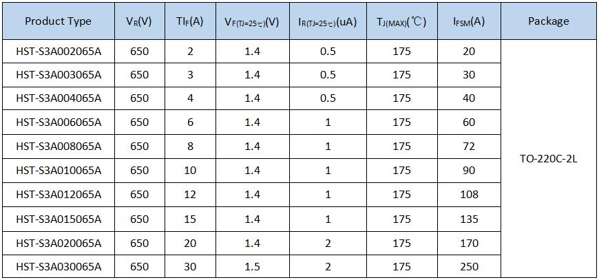 As the leading manufacturer and supplier of Schottky Barrier Diode (SBD), Homray Semiconductor Technology provide 650V and 1200V SiC SBD for PV Inverter, Server Power etc. The package type of 650V SiC SBD are TO-220C-2L,TO-220FM,TO-247-3L etc.