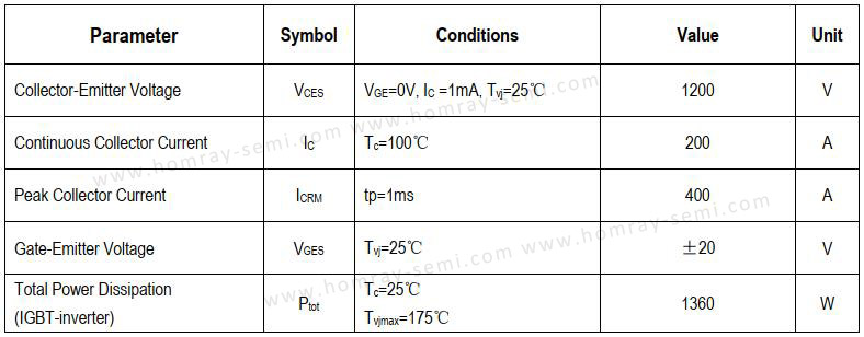 Homray Semiconductor Technology high power IGBT modules are designed for 600V/650V, 1200V and 1700V with rated current range 10A - 800A. HST-GL200B120F45 can replacing Infineon IGBT Module FF200R120KE3/KT3/KE4. HST-GL300B120F45 can replacing Infineon IGBT FF300R120KE3/KT3/KE4. IGBT Power Module are used in various applications such as AC and DC motor drives, Unregulated Power Supply (UPS), Switch Mode Power Supplies (SMPS), traction motor control and induction heating, inverters, used to combine an isolated-gate FET for the control input and a bipolar power transistor as a switch in a single device, etc.