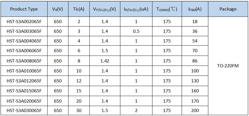 As the leading manufacturer and supplier of Schottky Barrier Diode (SBD), Homray Semiconductor Technology provide 650V and 1200V SiC SBD for PV Inverter, Server Power etc. The package type of 650V SiC SBD are TO-220C-2L,TO-220FM,TO-247-3L etc.